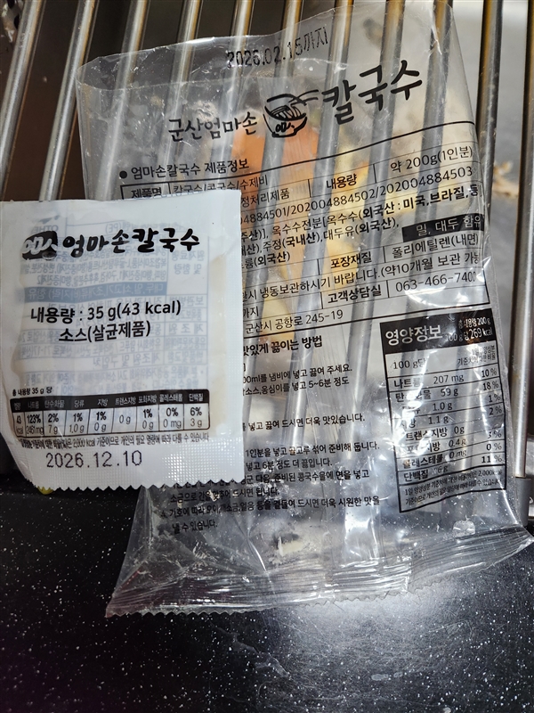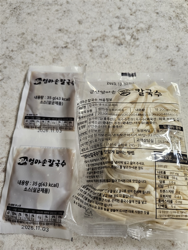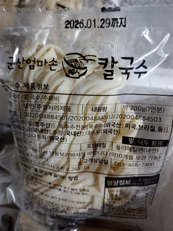 | 품목제조보고번호 | 칼국수, 수제비 [202004884501] |