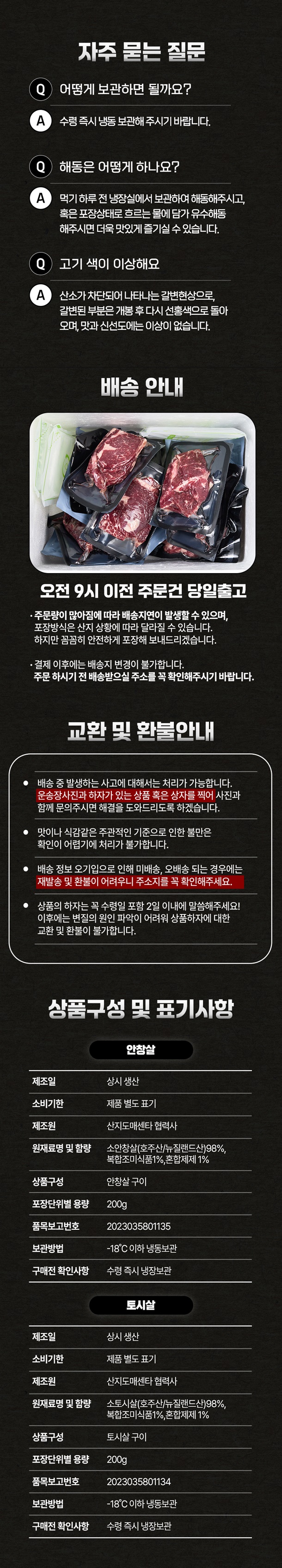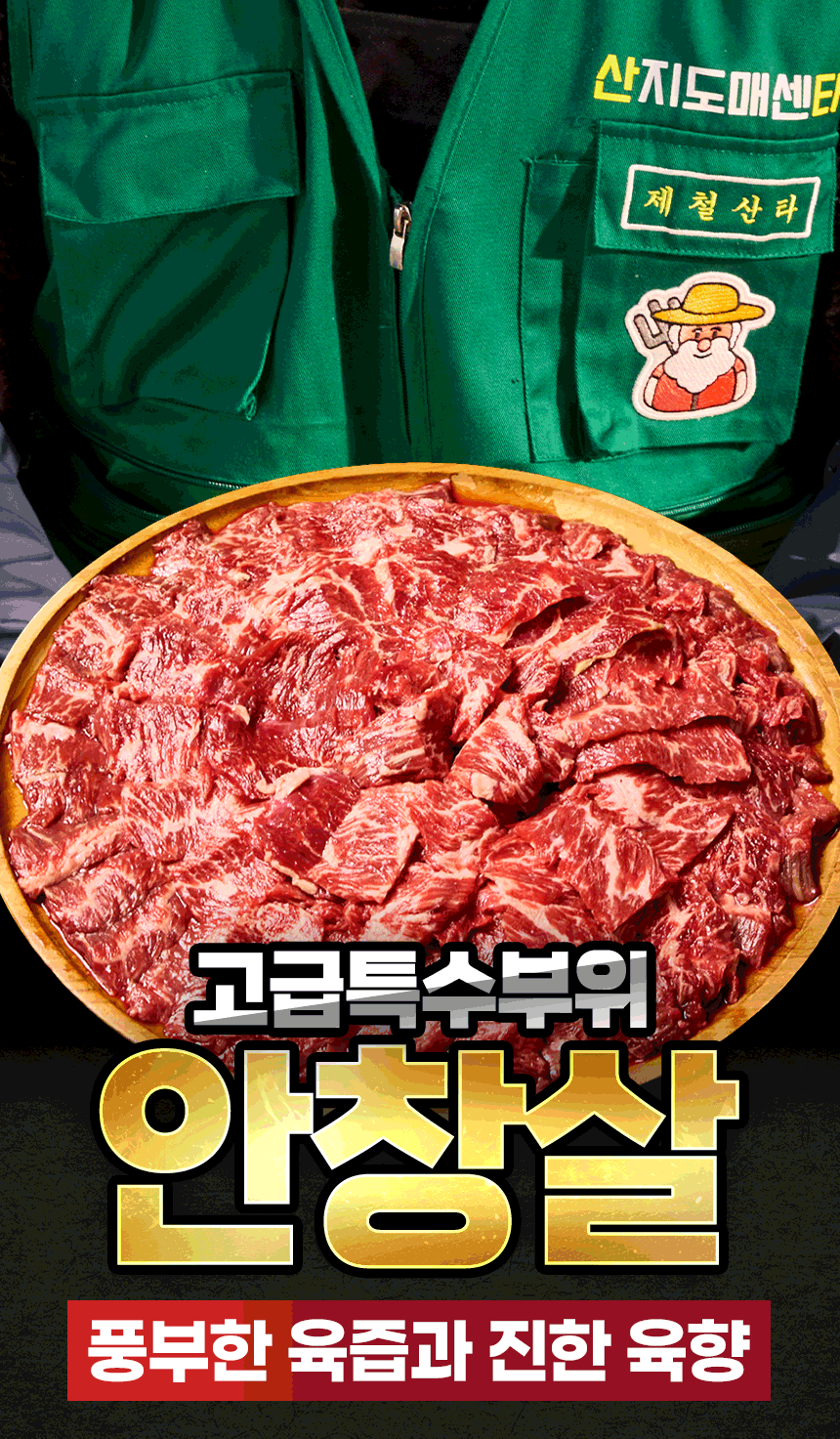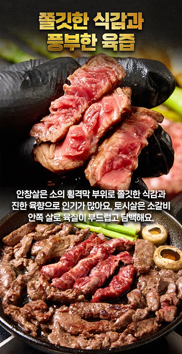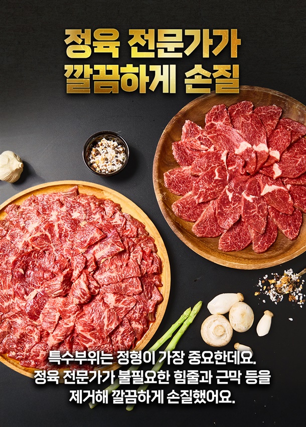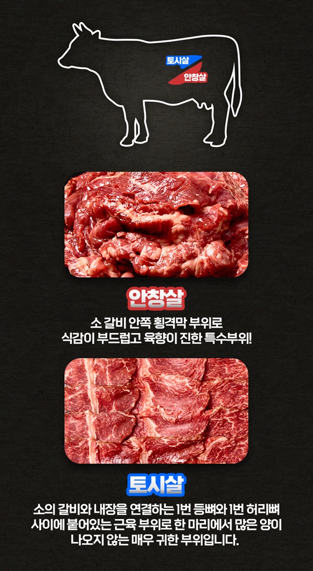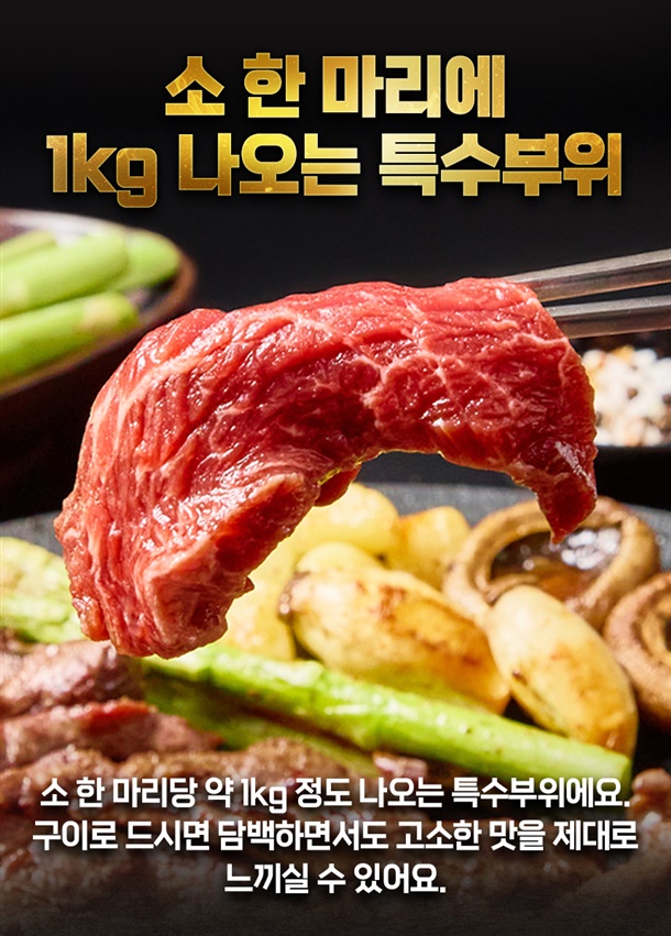소 한마리에 소량만 나오는 희소한 고급 특수부위로 많이 생산되지 않아 일반 정육점에서는 쉽게 만나기 어려운 부위로 고기 맛을 아는 분들이 찾는 숨은 고급 부위로 쫄깃한 식감과 깊은 육향을 느끼실 수 있어요!~