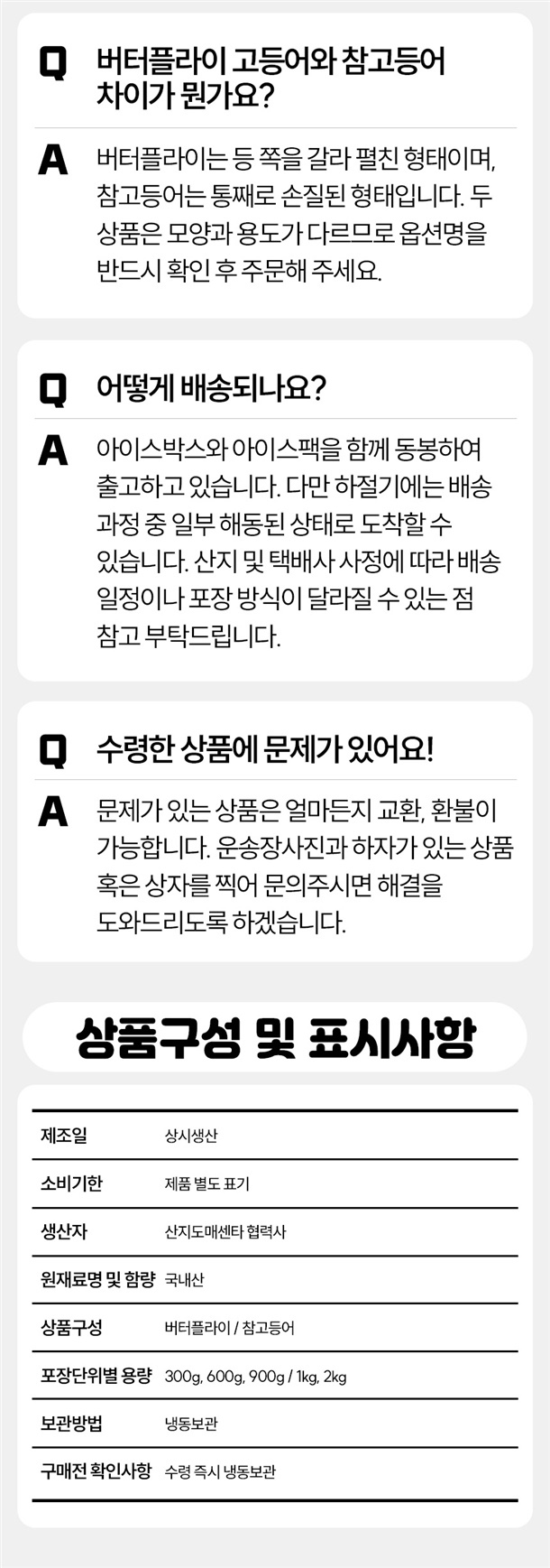 | 소비자 안전을 위한 주의사항 | 바로 드시지 않는 경우 수령 즉시 냉동보관 |