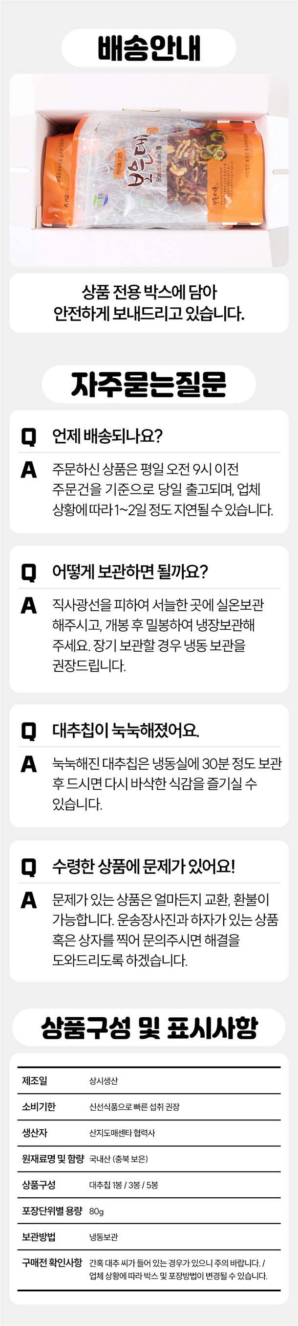 · 상품 불량 사유와 사진을 남겨 주시면 빠른 처리가 가능합니다.