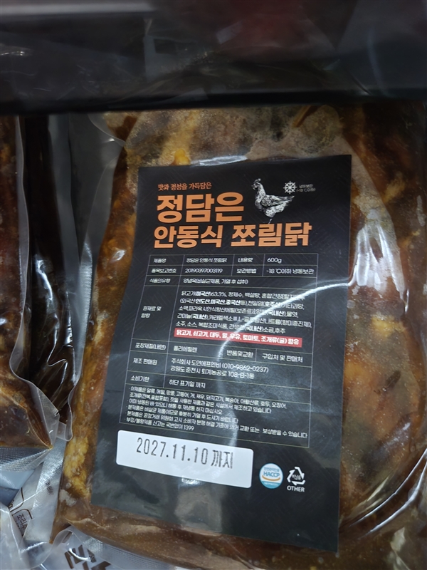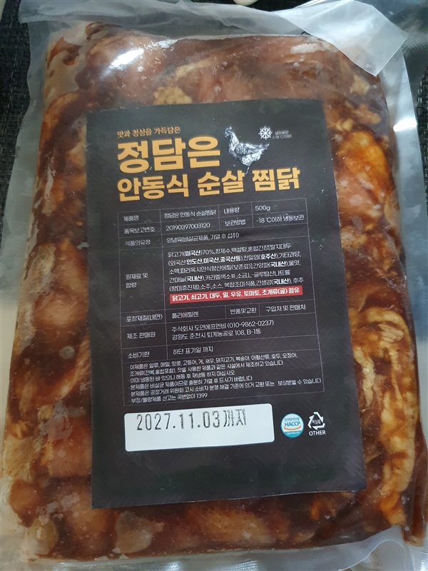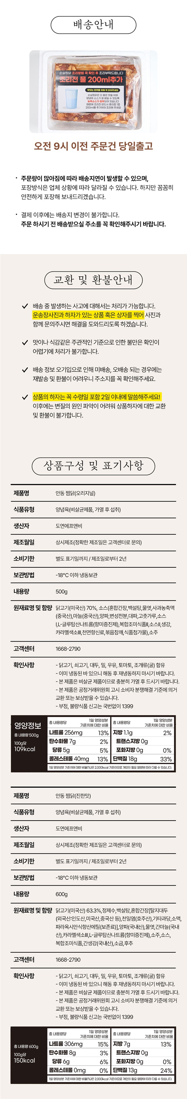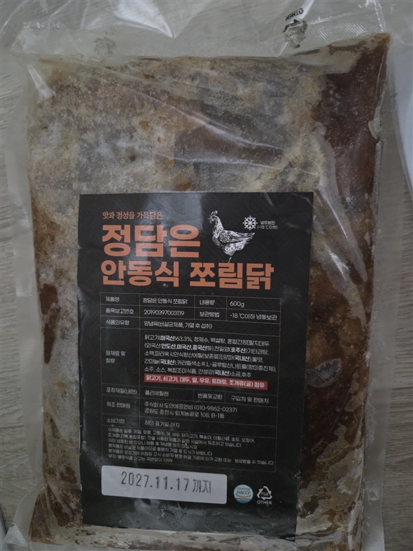 | 품목제조보고번호 | 안동찜닭 오리지널 [2019039700376], 안동찜닭 진한맛 [2019039700380] |