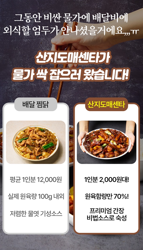 매장에서 2인분 15,000원에 파는 안동찜닭 온라인 최저가로 5천원대에 가져왔어요! 담백하고 부드러운 100% 순수 닭다리살로 원육 함량만 무려 70%로 푸짐하게 담았구요. 양념이 잘 베도록 48시간 이상 저온숙성해서 맛있게 보내드립니다.