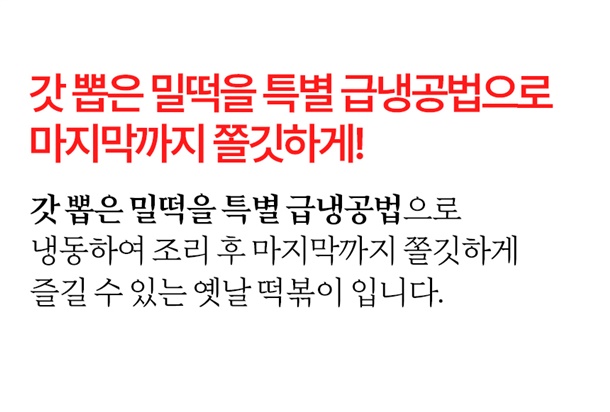 | 상품명 | 밀떡볶이 [보통맛 / 매운맛] |