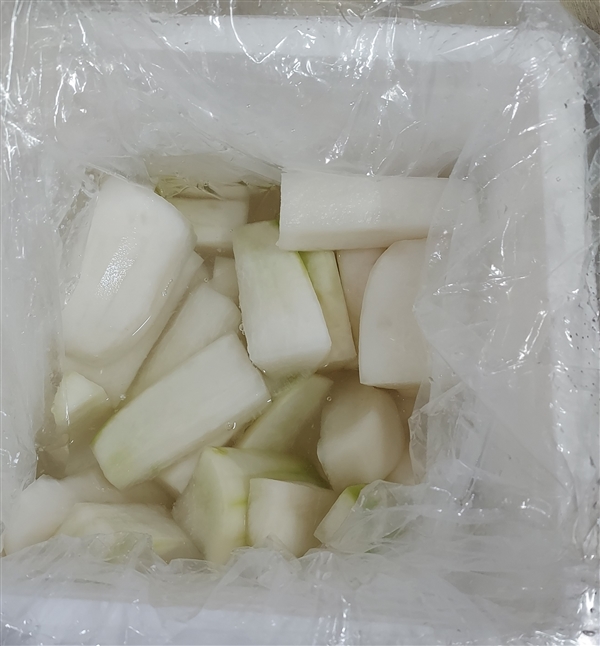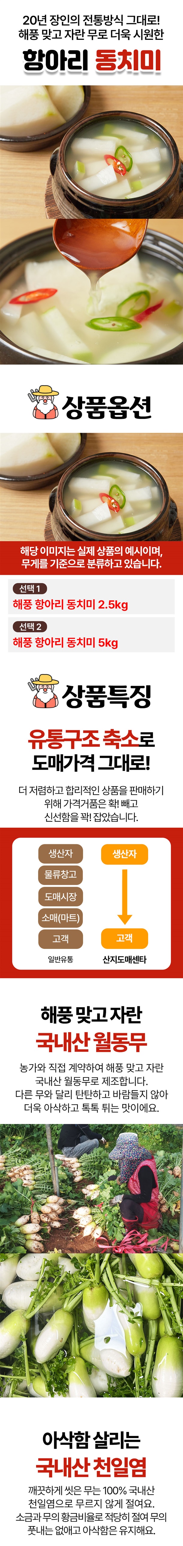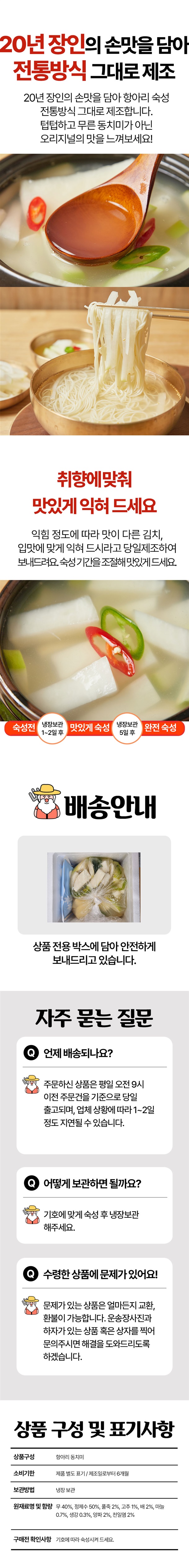 해풍 맞고 자란 단단한 월동무로 아삭함 일품이구요. 여수 토박이가 항아리에 숙성하는 전통방식 그대로 만든 시원한 원조 동치미예요. 4~5일 숙성해서 드시면 톡 쏘는 맛과 아삭한 무맛이 환상적입니다!