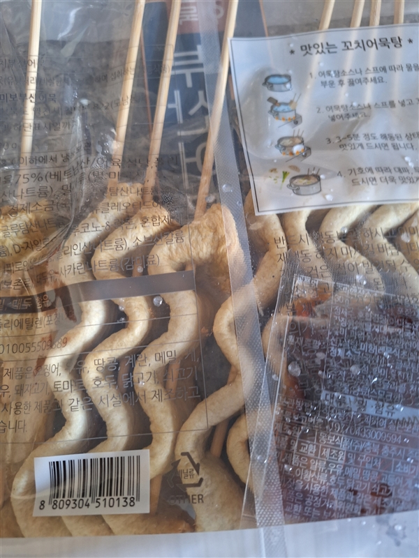 | 식품의 유형 | 어묵(유탕처리/비살균제품/가열하여 섭취하는 냉동식품) |
