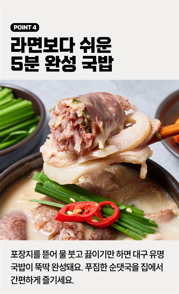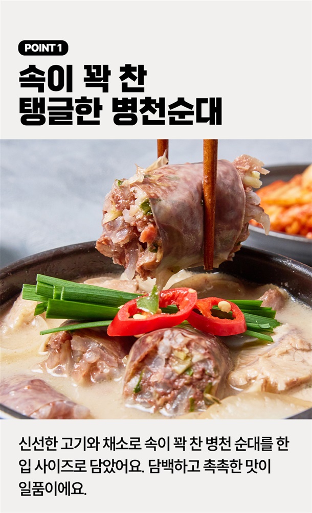 1차 완판하고 방금 갓생산해서 2차 재입고했어요! 싸구려 찰순대 아니고 100% 토종 병천순대로 제대로 만들었구요! 여기에 진한 돈골육수 넣어서 정통 순대국 특유의 진함이 정말 좋아요. 물만 450ml 붓고 끓여버리면 바로 순대국 맛집됩니다!!