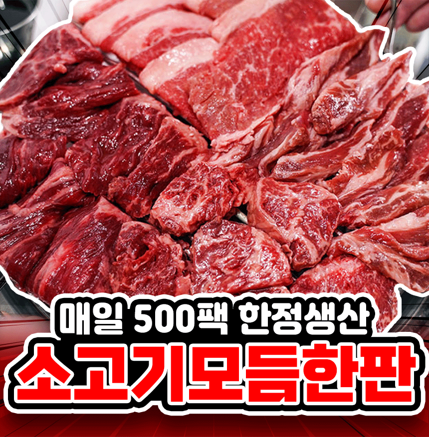 행사 때마다 완판되는 특수부위 모둠이구요. 요정님들 앵콜 요청에 이번에도 전국 최저가로 맞춰왔어요~ 삼겹살보다 싼 가격에 소고기 드실 기회! 배터지게 드셔보세요~