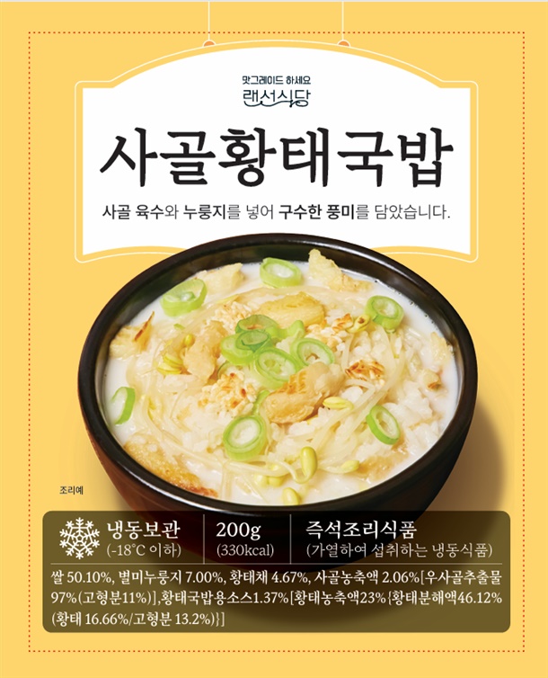 황태국밥 한그릇에 1천원대! 정확히 500봉만 믿을 수 없는 가격에 공구 진행합니다~ 진한 사골육수에 누룽지를 넣어 구수한 풍미를 담았어요. 라면보다 쉬운 3분 레시피로 든든한 한끼 챙겨보세요!